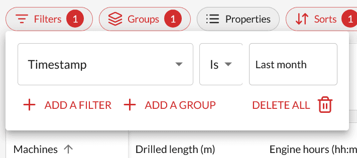 This pre-configured sheet allows you to view the production output of each machine from the previous month. To access this data, we have grouped the information by machine and applied dynamic filters on timestamps to ensure they always reflect the previous month. As a result, the sheet will automatically update each month to display the latest production figures.